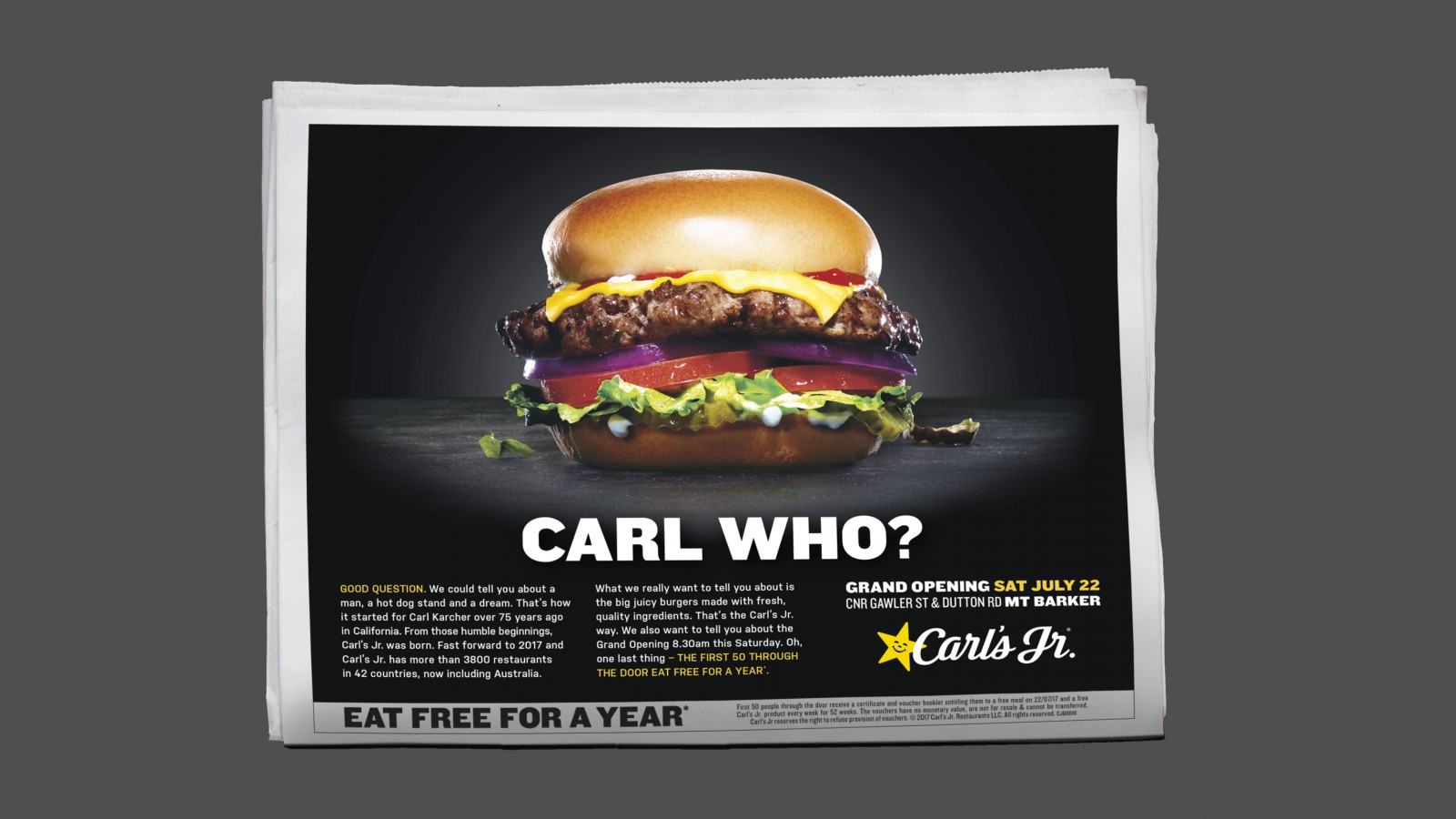 The internationally recognised burger brand Carl’s Jr. had tentatively begun its journey into the hearts and stomachs of Australians, but launching in South Australia held its own challenges. While it had a strong loyal following in the States, in Australia it had to be careful not to be ‘just another burger chain’. With unapologetic confidence and the attitude only The Dude in The Big Lebowski could muster, Black Sheep successfully launched the first Carl’s Jr. in Mt Barker, SA to incredible and justified hype.